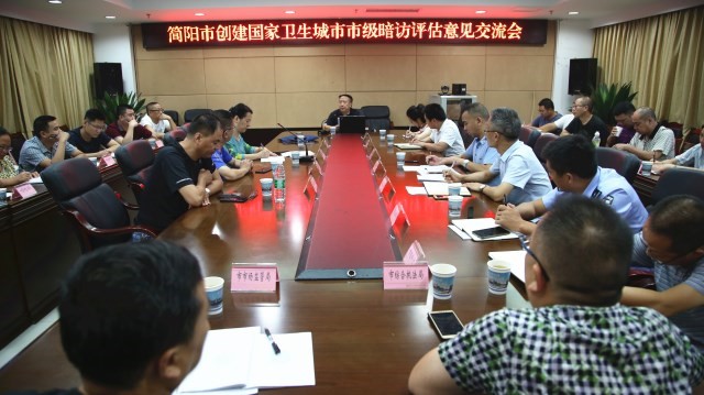 8月28日下午,簡陽市召開創建國家衛生城市市級暗訪評估交流會,會議由成都市衛健委愛衛處相關負責人主持,簡陽市衛健局、市綜合執法局、市場監管局等相關領導及科室負責人參會。