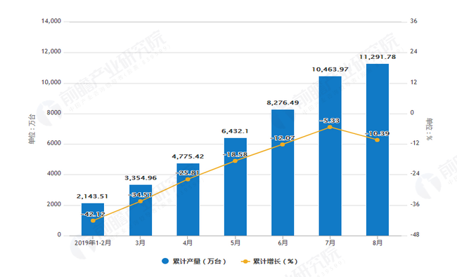 2019年1-8月重慶市手機產(chǎn)量及增長情況市場調(diào)查